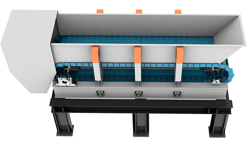 • Alimentador de placas DMBL1238: La tolva de alimentación está instalada en la parte superior y la tolva de descarga en la parte delantera; el bastidor debe tener una buena rigidez y capacidad de carga, y poseer una excelente resistencia al impacto instantáneo del material.
